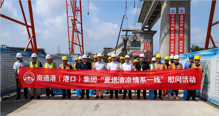 在熱浪滾滾的輪駁公司任港基地躉船現(xiàn)場(chǎng),朱玉強(qiáng)一行詳細(xì)了解生產(chǎn)運(yùn)行及高溫下的職工安全防護(hù)措施等情況,并與在場(chǎng)職工親切交談,再三叮囑大家一定要注意防暑降溫、落實(shí)好防疫舉措,保重身體,確保安全,以更加飽滿(mǎn)的工作熱情和健康體魄投入到南通港新一輪發(fā)展中。同時(shí),要求基層公司將夏季安全生產(chǎn)作為重點(diǎn)任務(wù)來(lái)抓,認(rèn)真落實(shí)防暑降溫和勞動(dòng)保護(hù)等具體措施,強(qiáng)化防暑降溫工作監(jiān)督檢查,切實(shí)保障廣大職工的安全和健康。